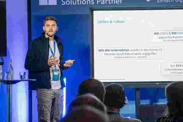 Tim Buchwald und David Wilpert vom Quick-Reaction-Team Cybercrime der Kriminalpolizei Schwaben Nord schilderten eindrücklich, wie gezielte Angriffe auf Unternehmen ablaufen. Sie zeigten, wie Täter über Monate Informationen sammeln, Systeme ausspähen und schließlich mit einer Ransomware drohen: Bezahlen, oder wir veröffentlichen Ihre Daten. Zur Veranschaulichung präsentierten sie reale Fälle, in denen gestohlene Unterlagen tatsächlich im Netz veröffentlicht wurden – der Super-GAU für Reputation und Vertrauen.
