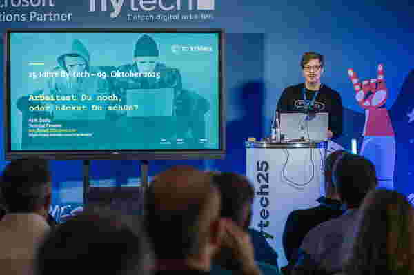 Yvonne Kamarinos lobte fly-tech als Partner, der Microsofts Mission „Empower every person and every organization to achieve more“ lebt. Sie zeigte auf, wie stark sich die Arbeitswelt verändern wird: „KI geht nicht mehr weg. Entscheidend ist, dass Führungskräfte Mut und Vertrauen zeigen – und ihren Teams Sicherheit im Wandel geben.“ In Zukunft, so ihre Prognose, werden KI-Agenten fester Bestandteil von Organigrammen sein.